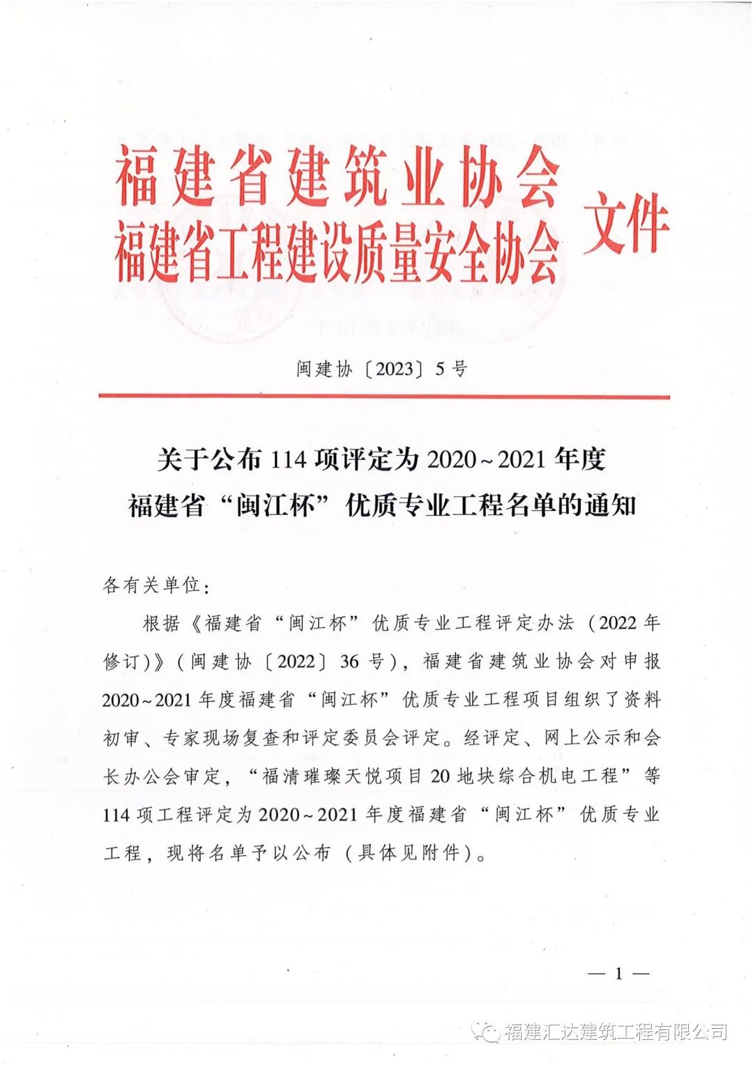 我司承建的城发·福郡智能化项目喜获“闽江杯”优质专业工程